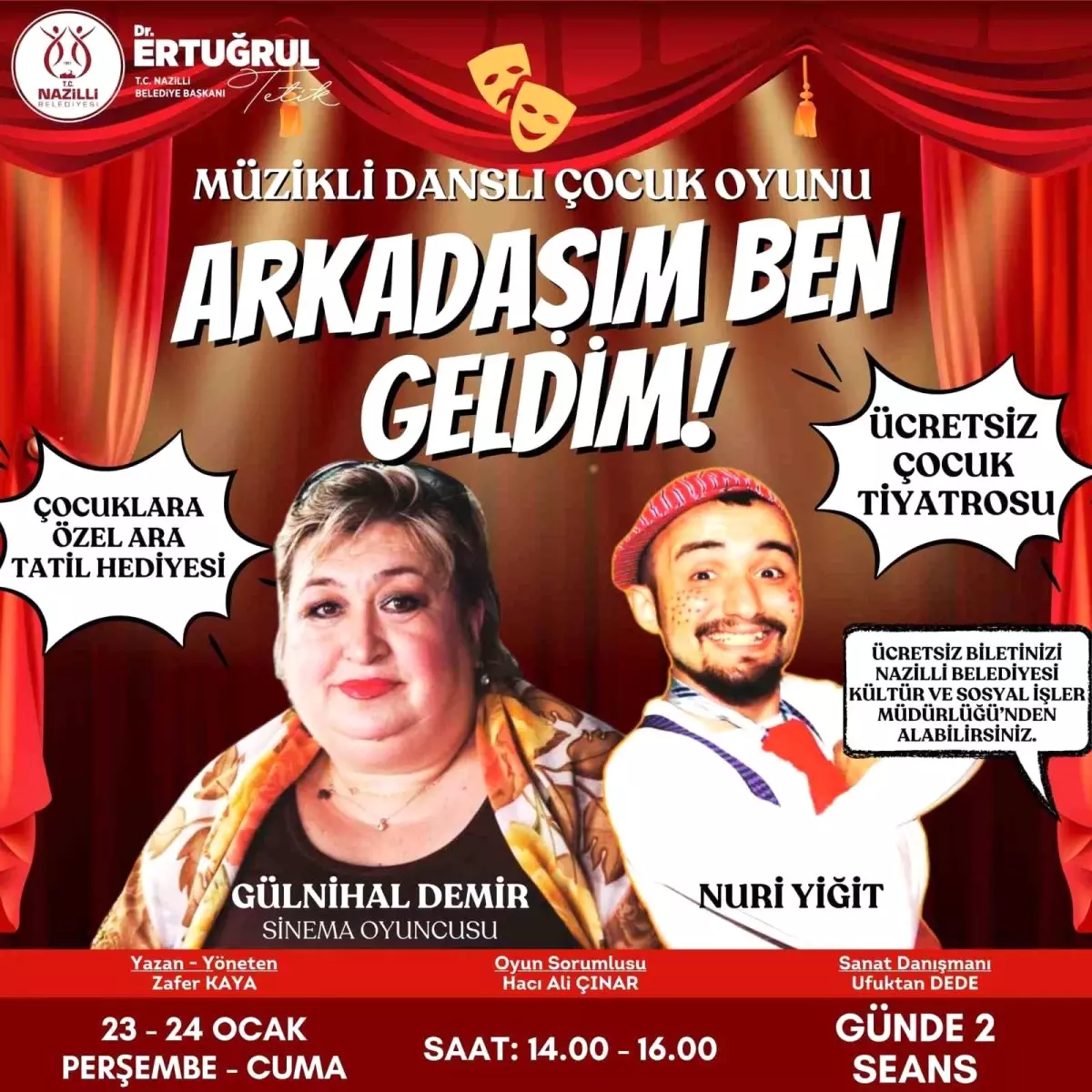 Nazilli Belediyesi, ara tatilde çocuklara keyifli anlar yaşatmak amacıyla ücretsiz tiyatro bileti dağıttı. Ünlü oyuncu Gülnihal Demir ve Nuri Yiğit’in…